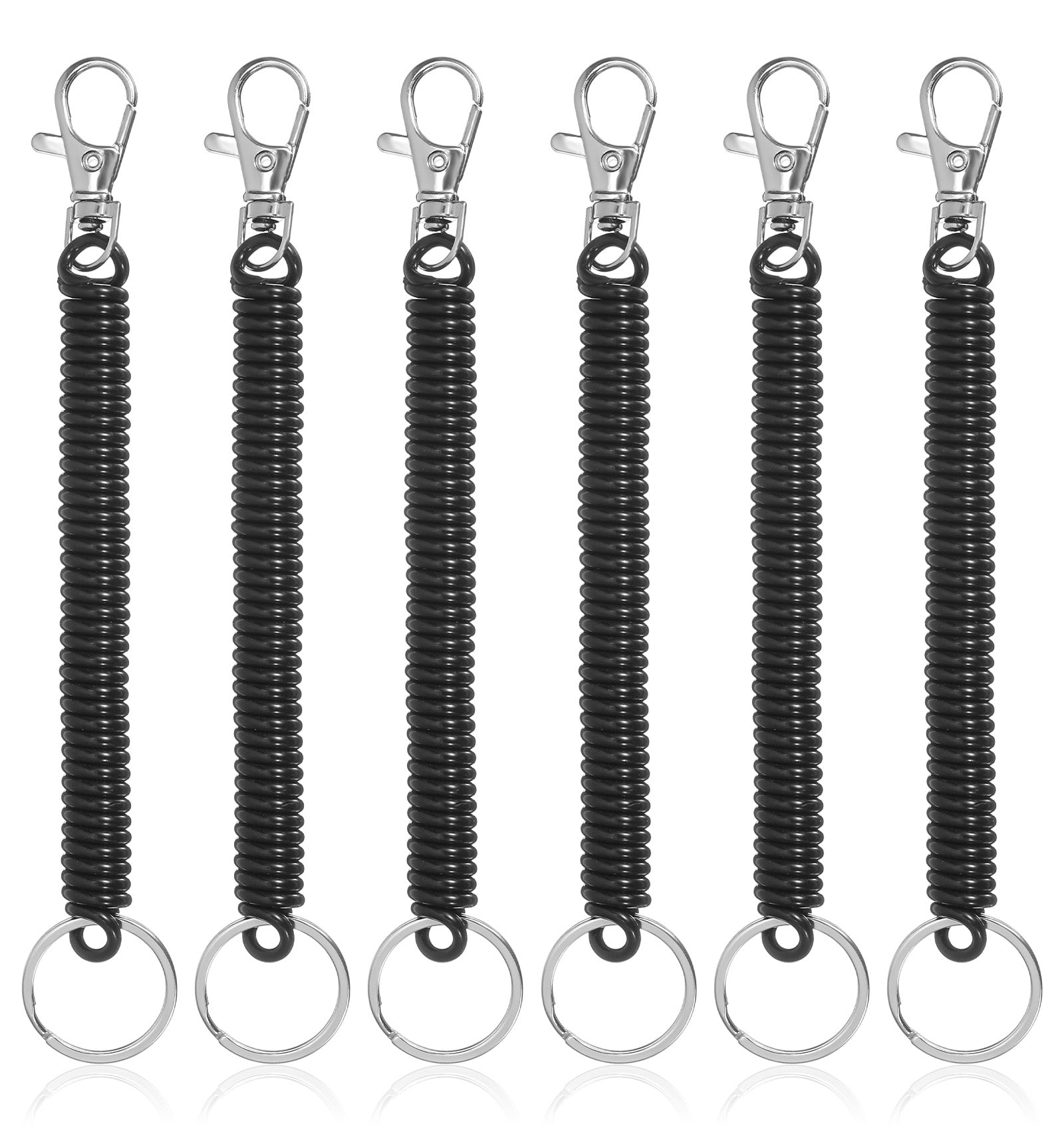 ValueBargain Black Stretchy Spiral Keyring, 6Pcs Anti-Lost Stretchy Lanyard with Keyring Lobster Clasp Keychain, Suitable for Keys Wallet Cellphone