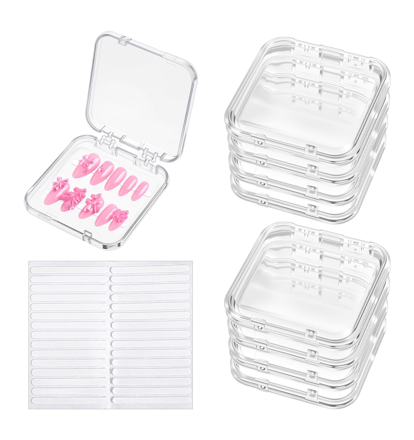 ValueBargain Press On Nail Stand, 8Pcs Transparent Nail Storage Box for Manicurist & Enthusiasts, Includes 60Pcs Double Sided Adhesive Tape Organizing Lightweight