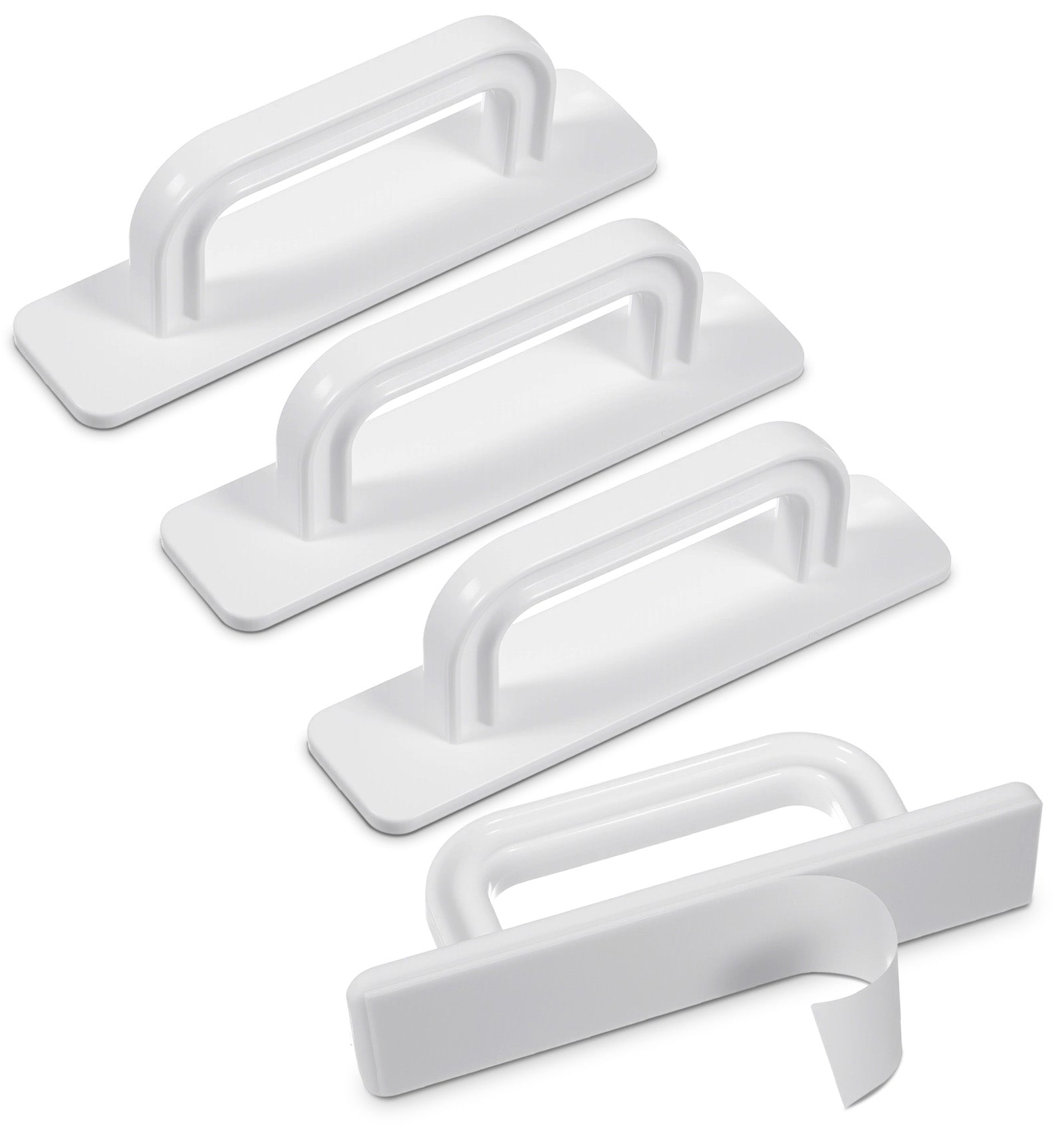 ValueBargain Stick on Handles, 4 Pcs White Small Plastic Adhesive Handles No Drill, 3.9 Inch Self Stick for Cabinet Drawer Sliding Door Closet Wardrobe Window